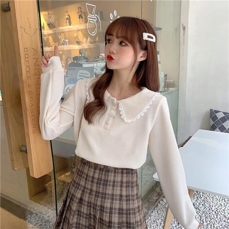 秋季法式甜美宽松洋气百搭长袖衬衣设计感小众娃娃领花边衬衫女装热门设计联盟服务商